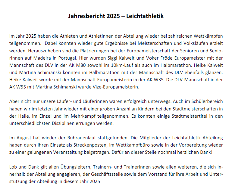 Für die Abnahme des Sportabzeichens ist eine zwingende Anmeldung vorab per Mail an Frau Corinna Engel erforderlich!